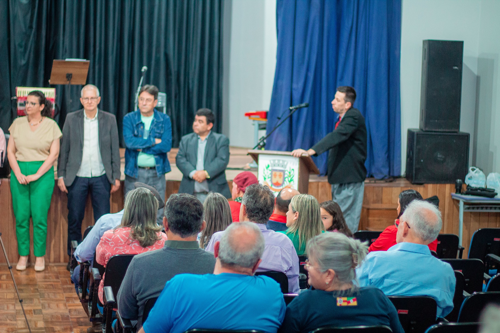 A cerimônia contou com a presença de autoridades, incluindo o Prefeito Paulinho Salbego, o Presidente da Câmara, Vereadores e Secretários Municipais, além de representantes da cultura local. O ponto alto da noite foi a celebração do Bugio, ritmo genuíno da terra.